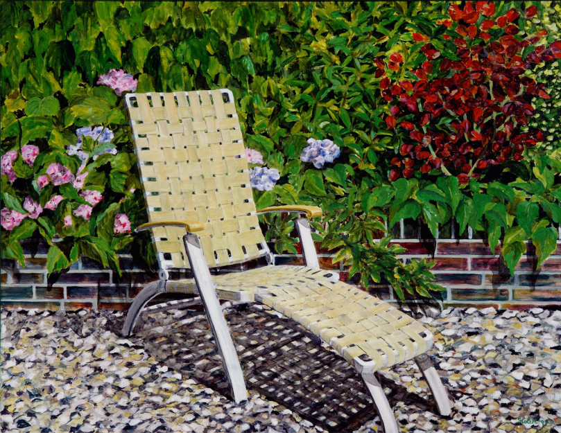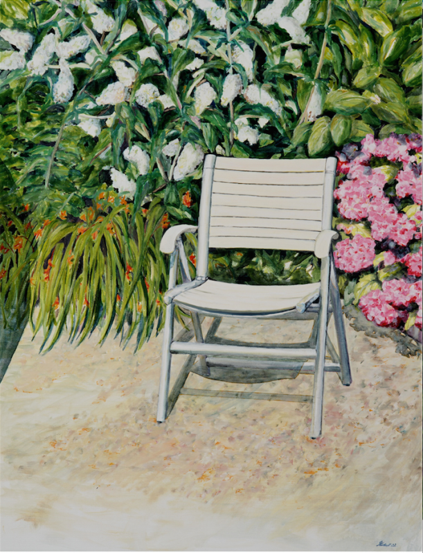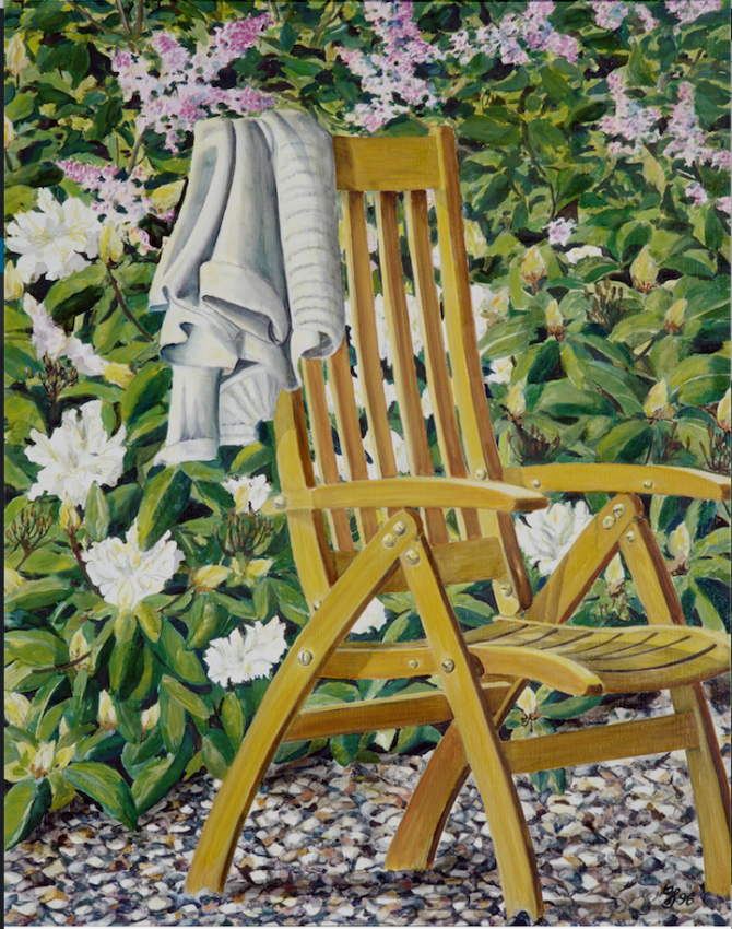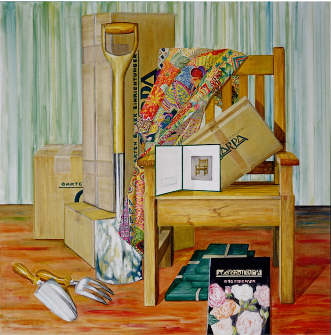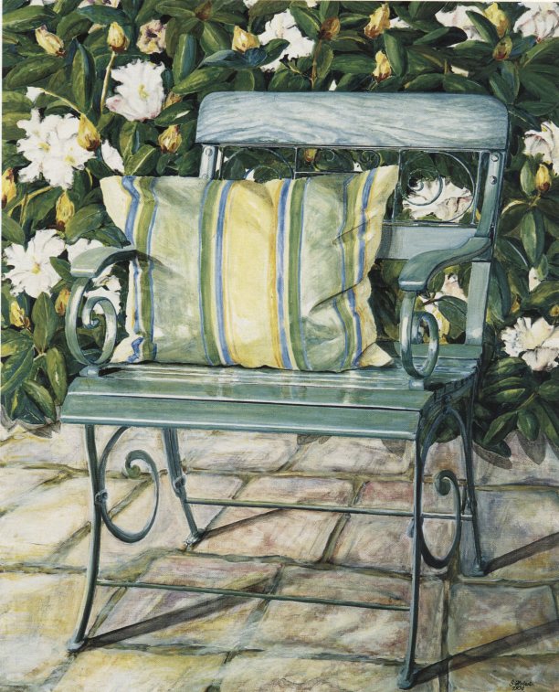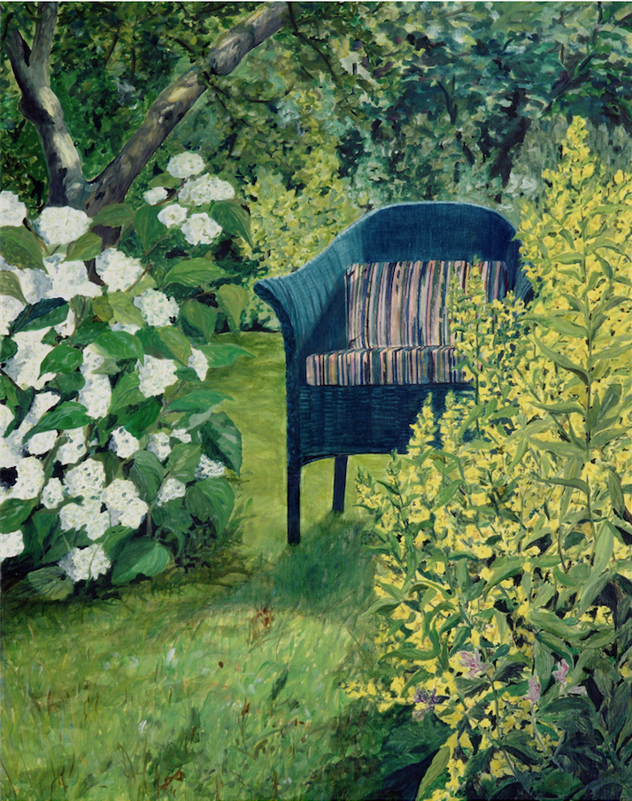 Kent I, Kentstuhl im Mühlenholzer Bauerngarten, 1994, Öl auf Lwd., 90 x 80 cm
