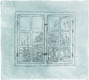Mühlenholzer Motive: Fenster, 1988, Kaltnadel, 11,5 x 10 cm