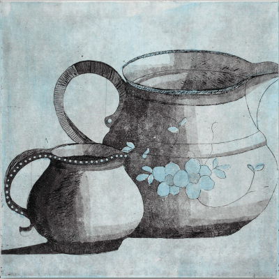 Zwei Krüge, 1991, Aquatinta, blau, 20 x 20 cm