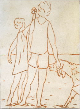 Junge und Mädchen mit Hund, 1991, vernis mou/Weichgrundätzung, 20,5 x 15 cm