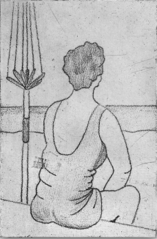 Frau im Badeanzug, 1992, vernis mou/Weichgrundätzung, 15 x 10 cm