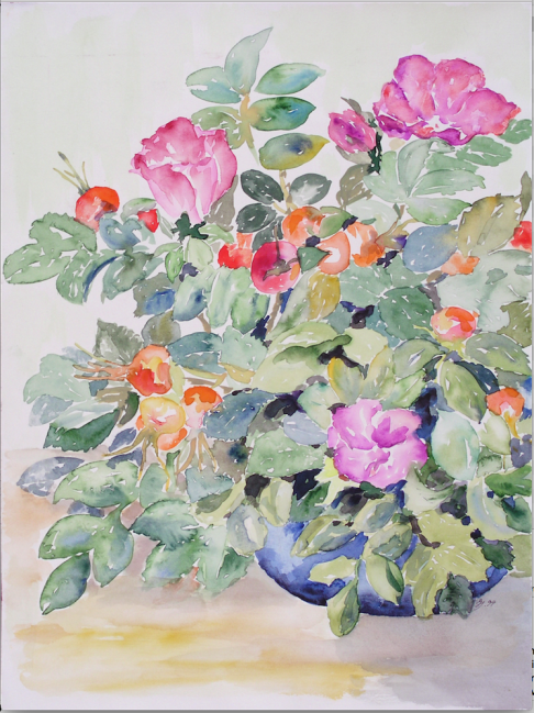 Hagebutten in Vase, 1994, Aquarell, 37 x 48 cm