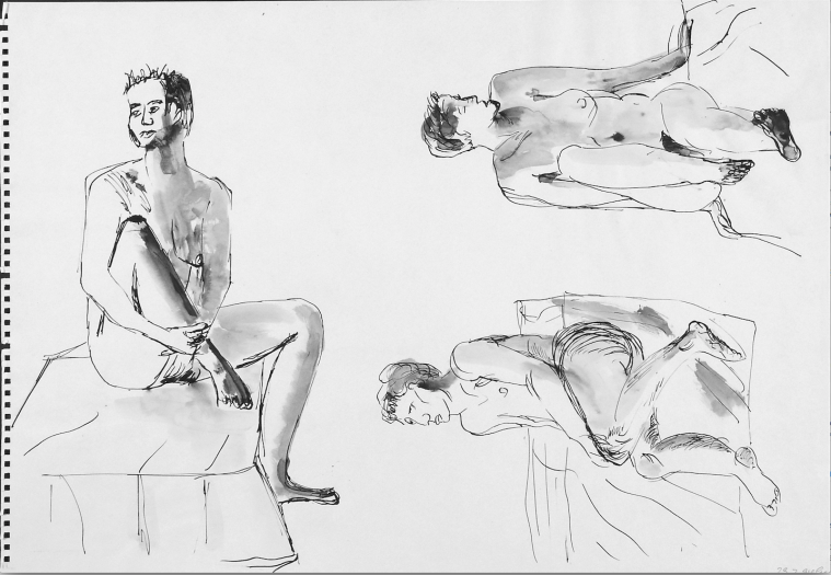 Weibliche Akte: stehend, sitzend, 1994, Tinte, laviert, 36 x 47 cm