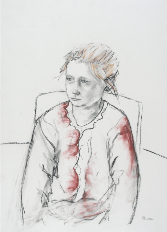 Katharina, 2001, Kohle, koloriert, 64 x 50 cm